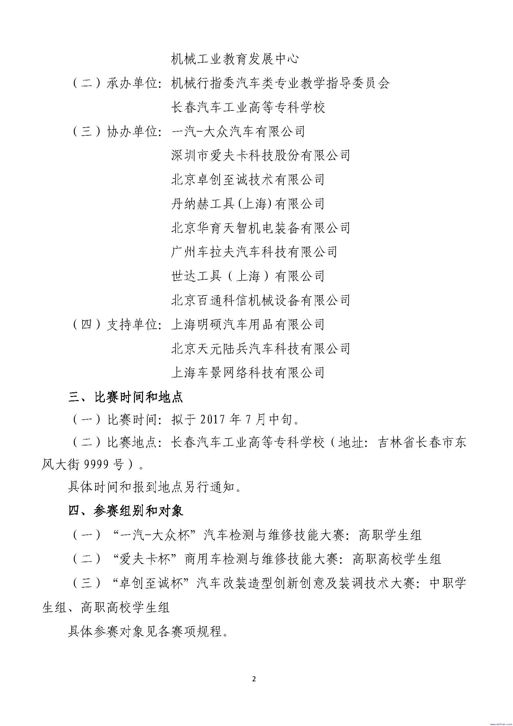 关于举办2017全国机械行业职业院校技能大赛—汽车类专业技能竞赛的通知