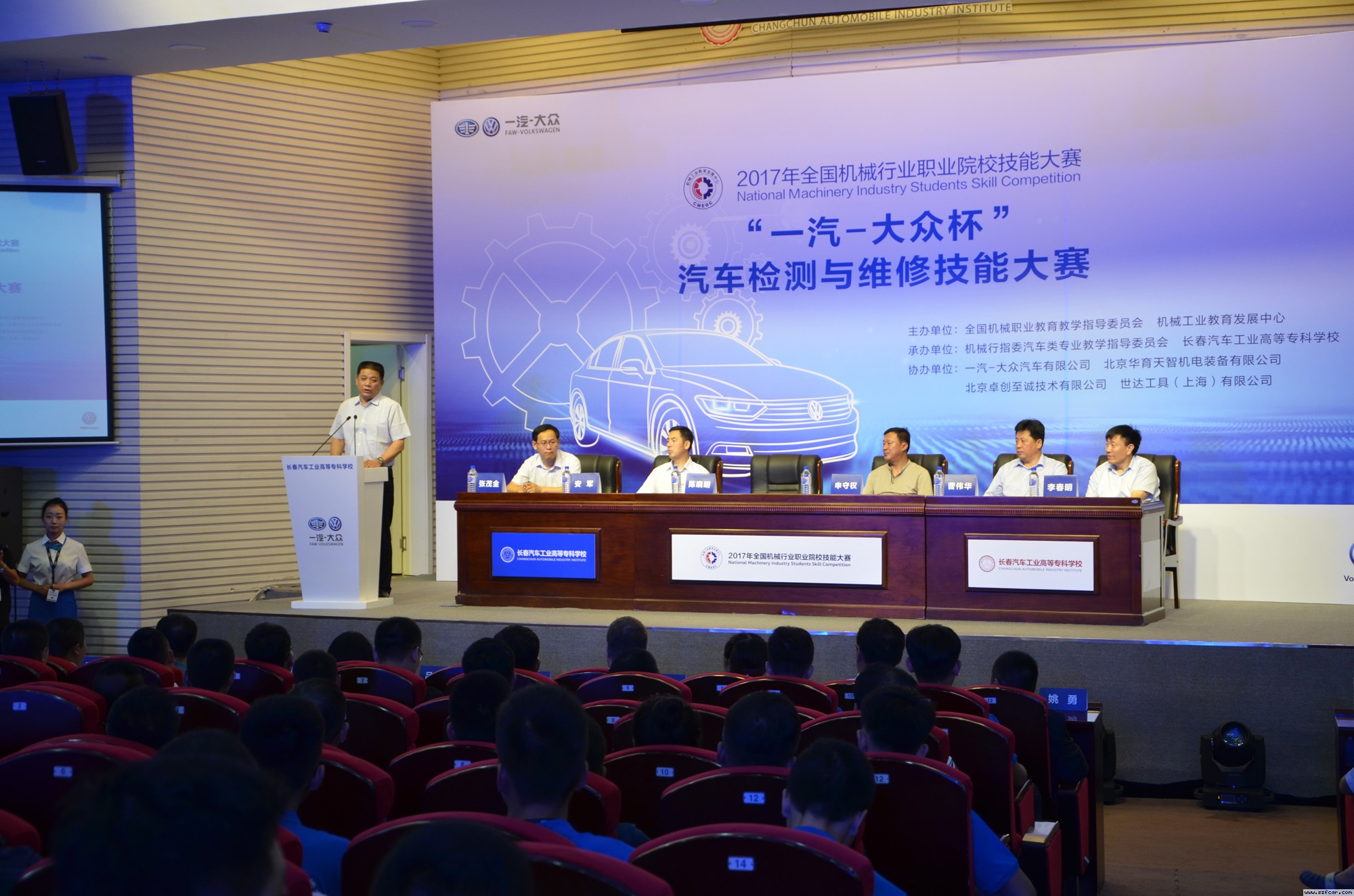 7月17日上午九时,在长春汽车工业高等专科学校图书馆报告厅举行了隆重的“2017年全国机械行业职业院校技能大赛”开幕式,本次大赛由全国机械职业教育教学指导委员会、机械工业教育发展中心主办,机械行指委汽车类专业教学指导委员会、长春汽车工业高等专科学校承办,及各大企业协办的三个技能大赛同时开赛。