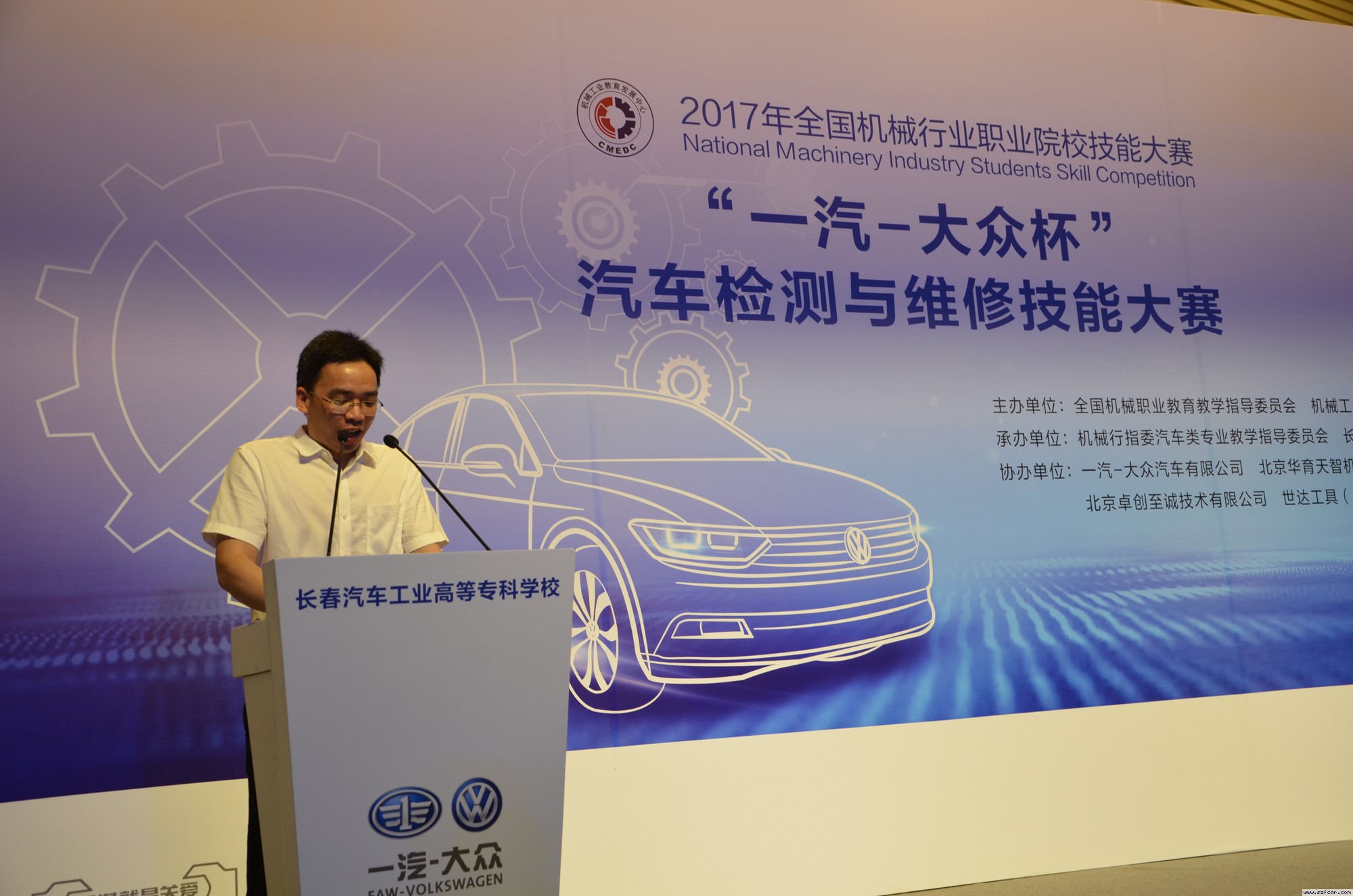 长春汽车高专副校长明晓辉和副校长丁卓为“爱夫卡杯”商用车汽车检测与维修技能大赛颁发二等奖