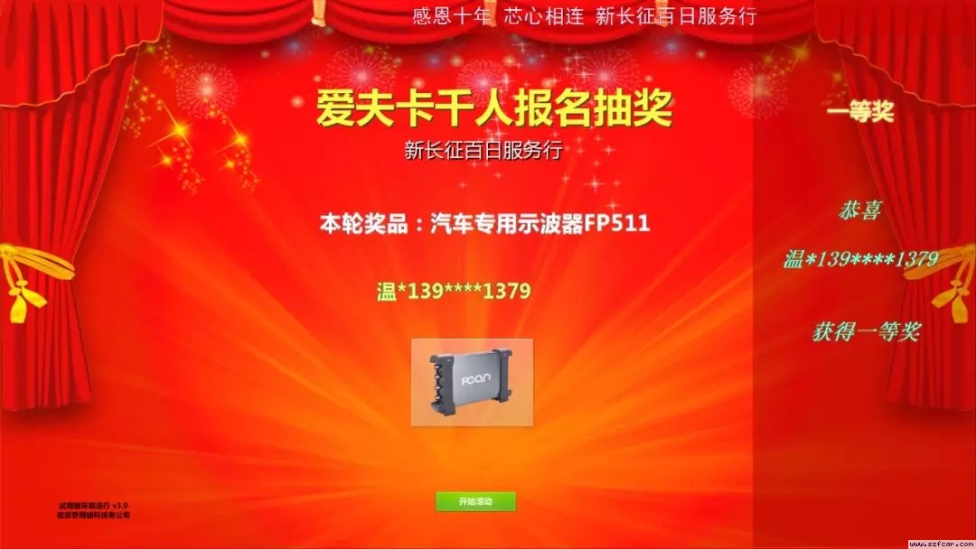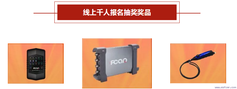 ▲从左至右:三等奖奖品-汽车专用内窥镜FS-30U、一等奖奖品-汽车专用示波器FP511、二等奖奖品:模拟信号发生器FM120