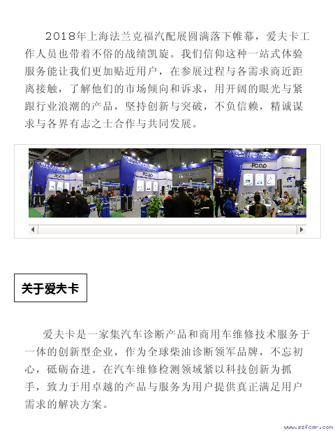 热烈祝贺深圳爱夫卡参加2018年上海法兰克福汽配展圆满成功