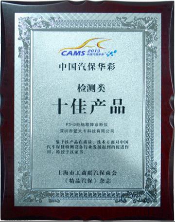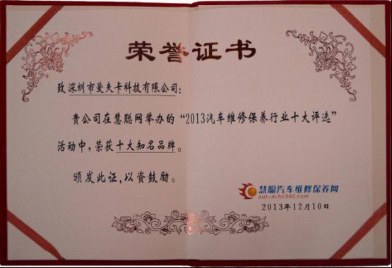 2013年是辉煌的一年,是爱夫卡全体用辛勤汗水努力打拼出来的丰收年,也正是如此,爱夫卡在2013年里赢得了行业各界人士的一致认可。在本次上海法兰克福国际汽保展览会中,爱夫卡凭借优异表现,勇夺2项大奖。由权威汽保杂志《精品汽保》联合上海市工商联汽保商会评选出爱夫卡F3-D为年度十佳汽保产品。由每年行业最具权威的评选活动,慧聪十大评选,颁发的“十大知名品牌”,这是爱夫卡连续第三年荣获慧聪十大荣誉。由此可见爱夫卡的发展得到了行业专家和媒体的一致认可,爱夫卡并不会因此骄傲,反而会再接再厉努力创新和研发,向广大用户提供更高效更实用的科技产品,来回报社会。